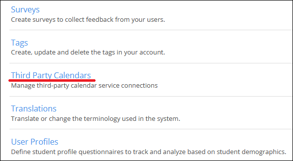 1. Navigate to Advanced Options > Settings. Third Party Calendar.