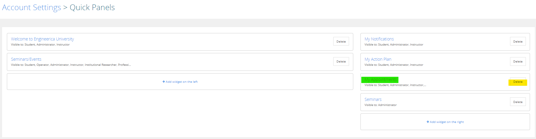 3.2 - Go to the menu "Home Page Quick Panels":