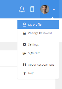 1.) Once the plugin has been approved then AccuCampus users wanting to use the integration can go to AccuCampus and in the profile menu, click on their names, and then "My Profile":