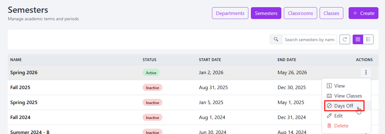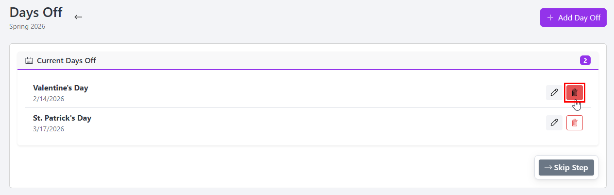 AccuClass: How do I go about removing Days Off or Holidays from Semesters?