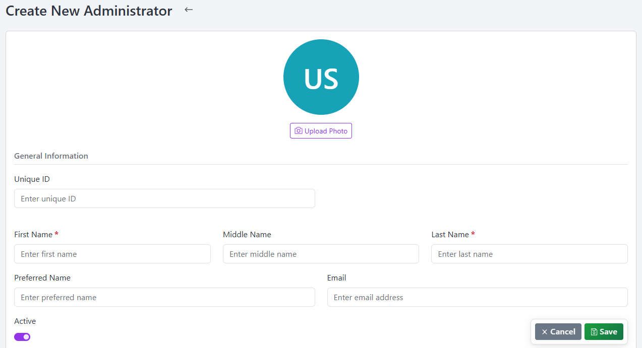 Preferred Name: Optionally, complete this field with the preferred name of your Admin.