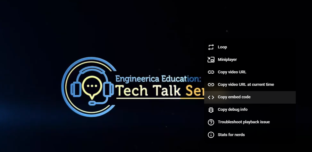 - Locate the video on YouTube, right-click on it, and select the "Copy Embed Code" option (may be different from different sources).