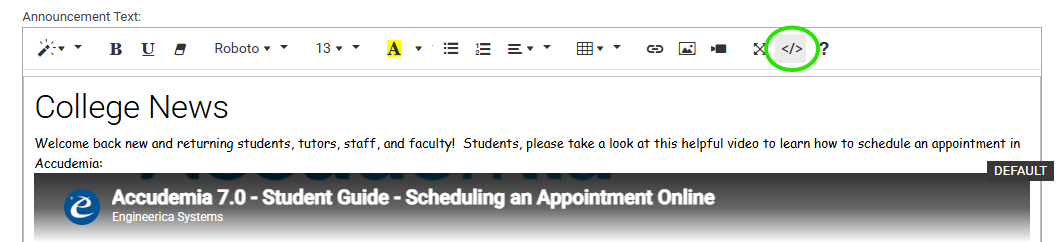 Accudemia - How can I embed a video in the Accudemia Homepage Announcements?