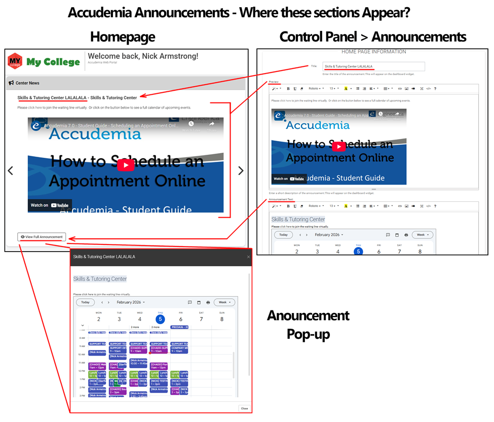 In this guide, we'll show you how to update the Announcements so that they can have a YouTube or other shared video embedded on your homepage in Accudemia. This is helpful when needing a student to perform a certain action in the software, or it can be helpful to share events at the center.