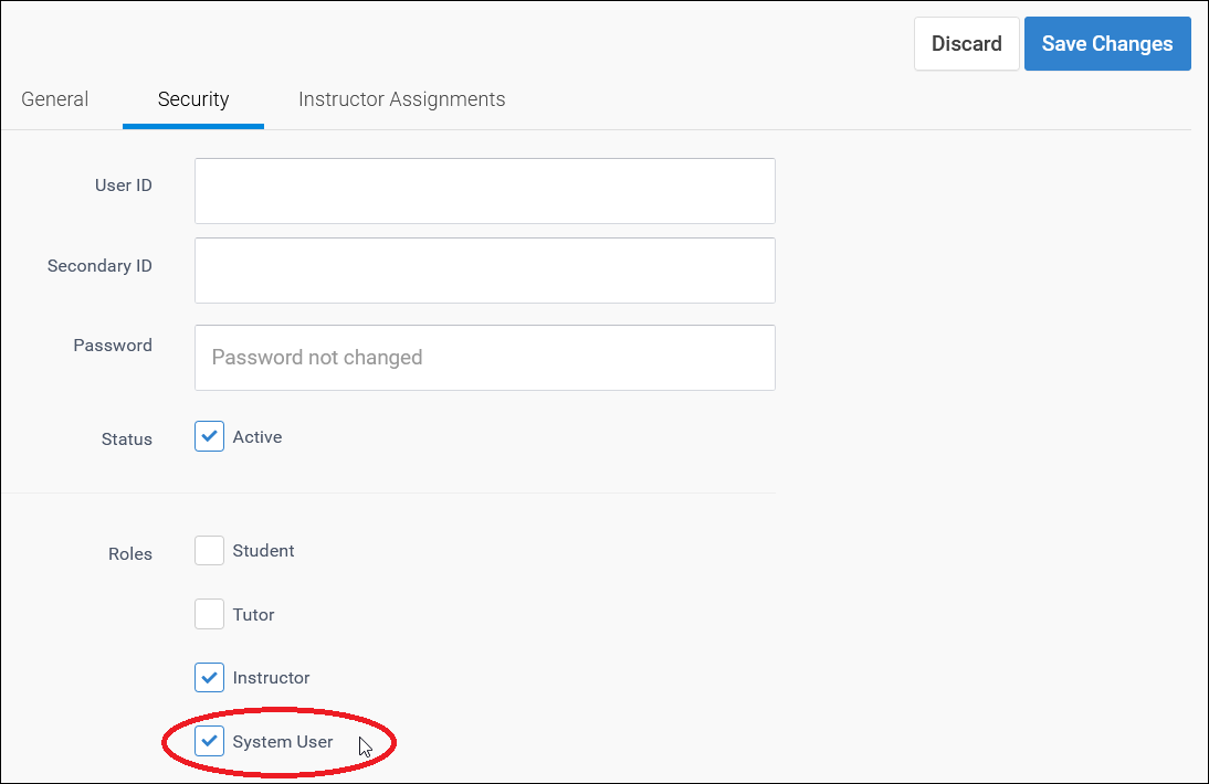3. Select the "Security" tab on the pop-up screen, then fill in the "System User" checkbox if it isn't already.