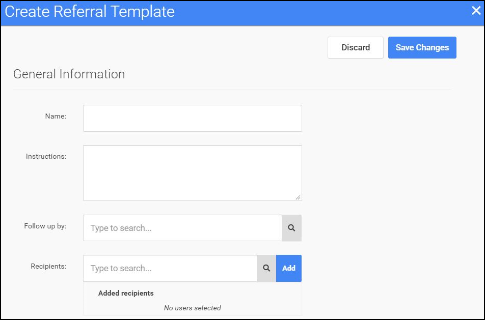 Note: Only administrators can create or edit referral templates.