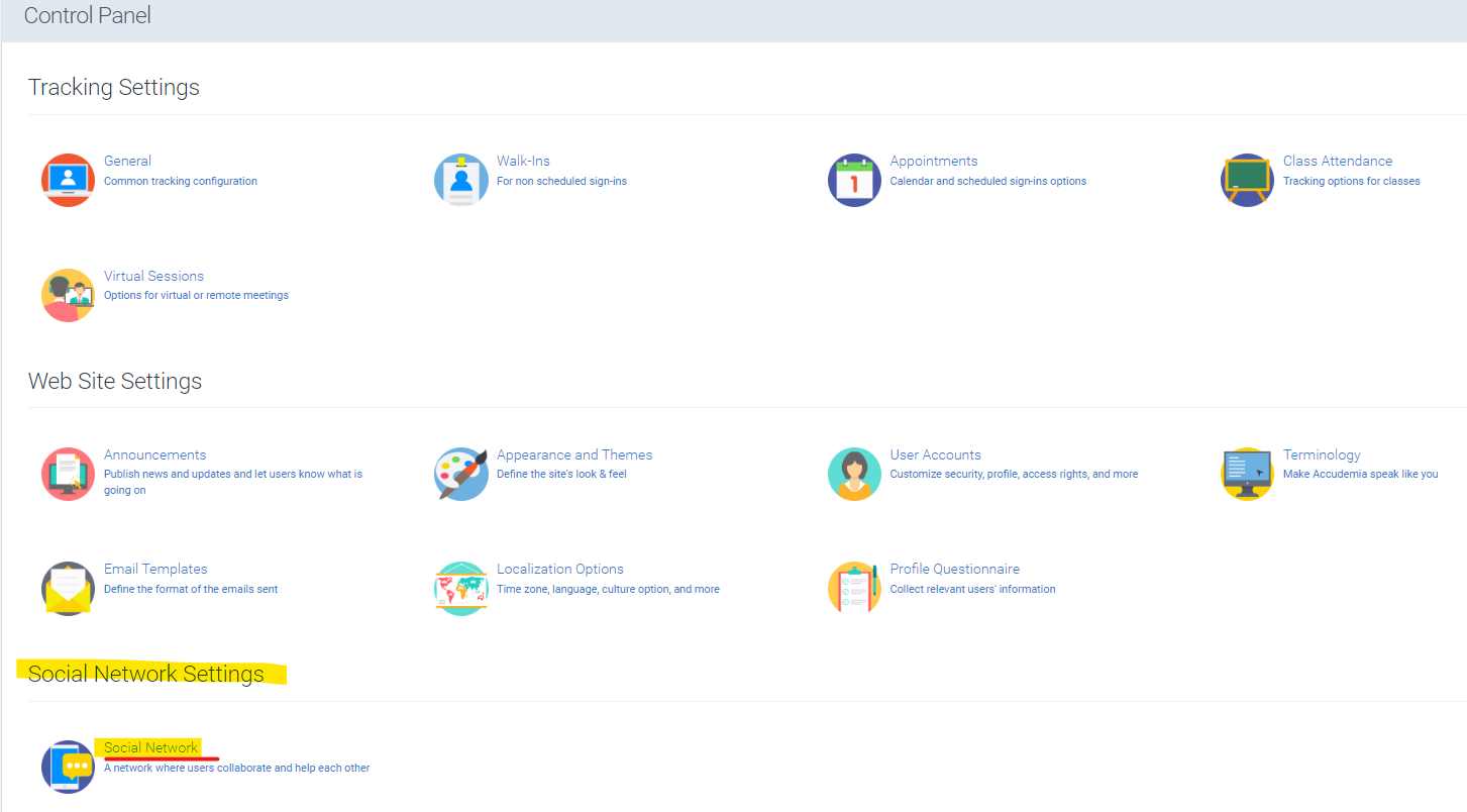 - Now you'll notice a new area available to configure the the Social Network Settings that you'll want to click on the Social Network section to continue.