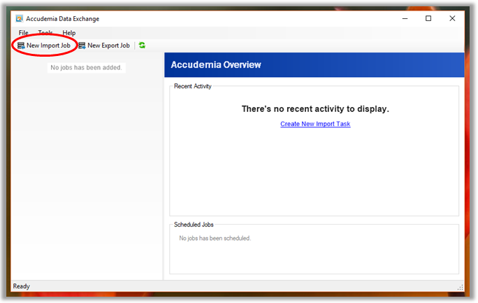 11. Click New Import Job.