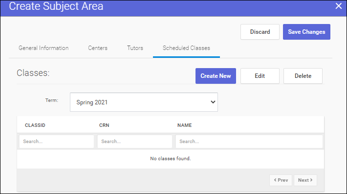 8. Click the "Scheduled Classes" tab and begin creating, editing, and deleting classes for this subject.