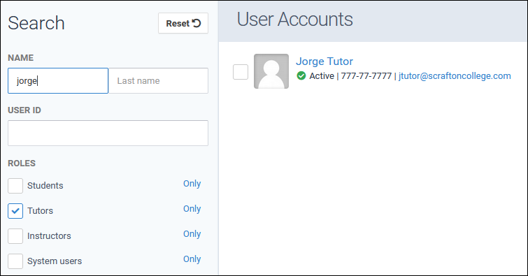 2. Search for the tutor by using the search feature on the left side of the screen, then click on their name.