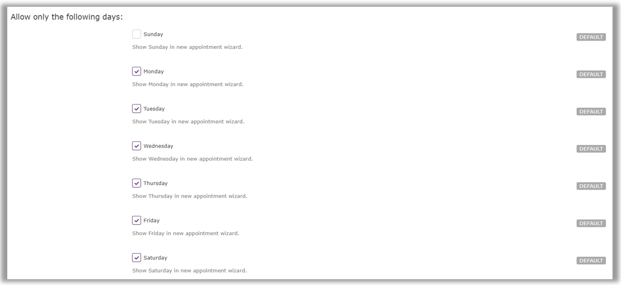 7. Scroll down to Allow Only the Following Days. Select the specific days during which appointments will be offered.