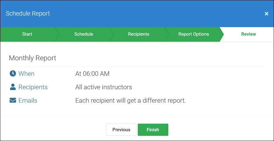 4. Set the schedule details (like how often it reports, what time of the day it will send, and which day of the week), then click Next.