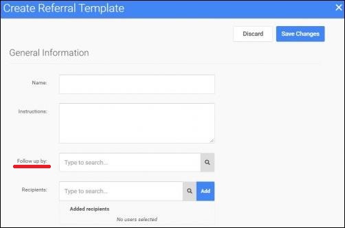 3. Select the "Follow up by:" field and type in the name of the staff member who should be receiving these referrals.