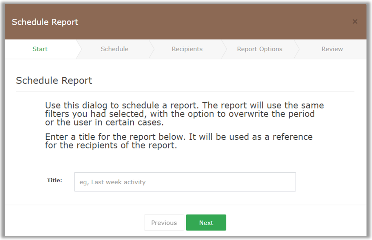 6) Select a schedule for the report to run on. This could be daily, every week day, weekly or monthly. Click Next.