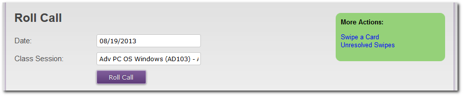 - First choose a Date, then pick from the available Class Sessions for that date, and click the Roll Call button.