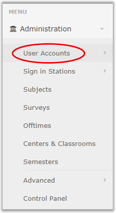 2. Click Administration > User Management > Users from the main menu in Accudemia.