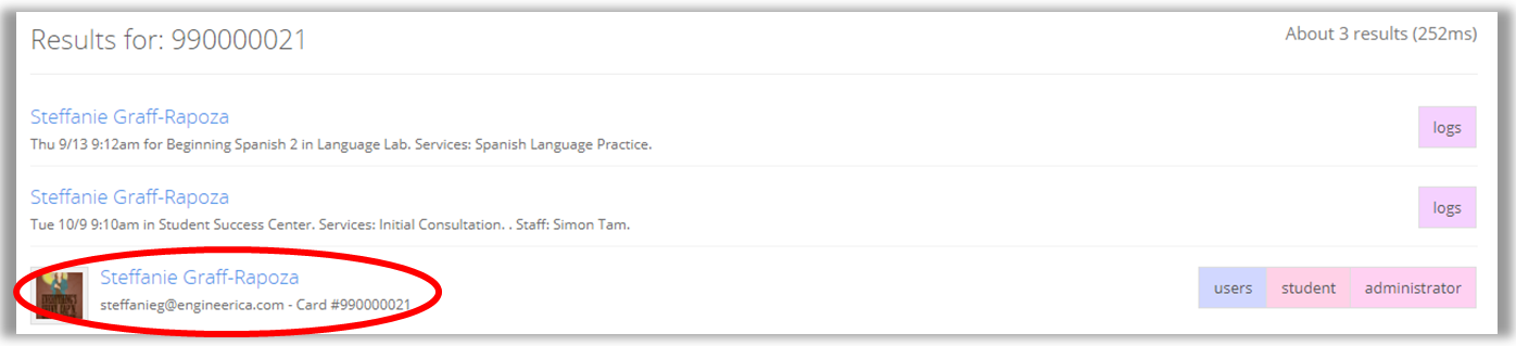 3a. If using the card number method, all of your session logs will be pulled up along with your profile page. Click on the link that lists your role(s) next to it.