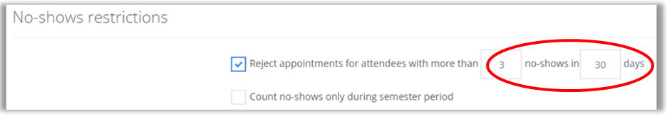 15a. Check the box next to Reject appointments for attendees to enable the functionality and choose the no-show limit.