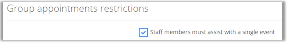 17. GROUP APPOINTMENT RESTRICTIONS: allows you to decide if staff members must assist with events.