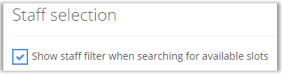 8. STAFF SELECTION: adds a filter to allow the attendee to select a specific staff member when scheduling an appointment. If unchecked, the attendee will be shown all available staff members.