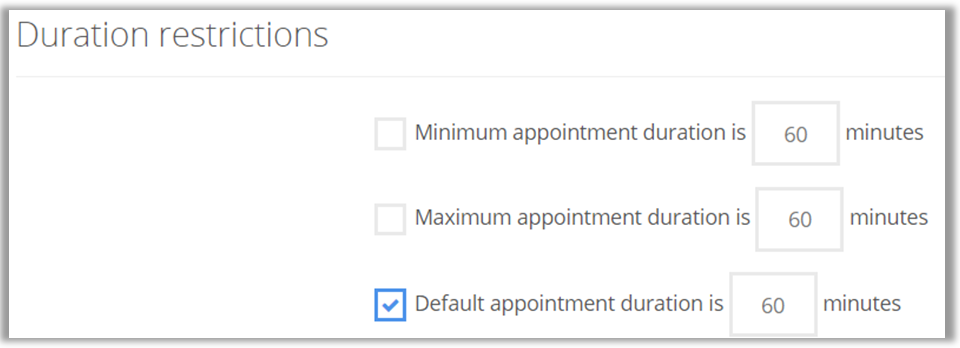10. DURATION RESTRICTIONS: choose the minimum and maximum length of appointments.