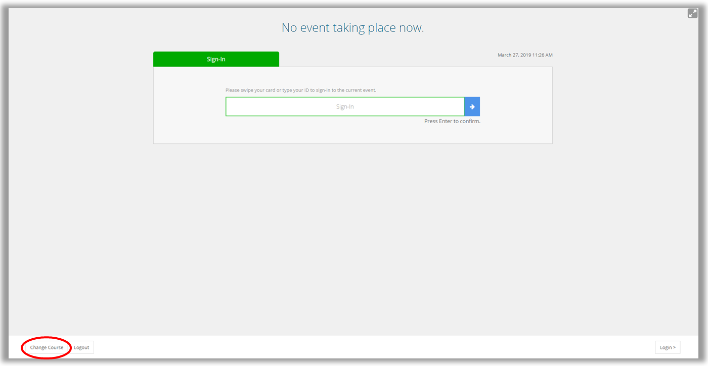 7a. Once the sign-in station is installed, you will see that it won't necessarily show the name of the event that users will be signing in for.