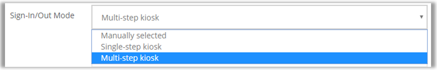 8. Select Multi-step Kiosk as the Sign-in/Out Mode.
