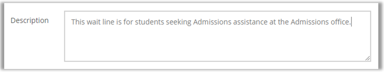 6. Enter a description for the wait line.