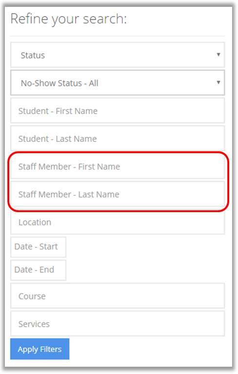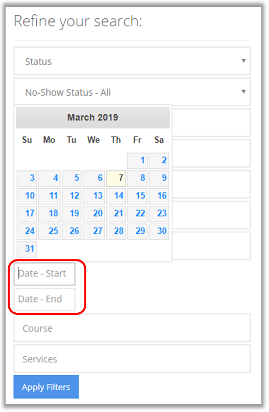 11. Course: allows you to narrow down the search further with the course the appointment was for.
