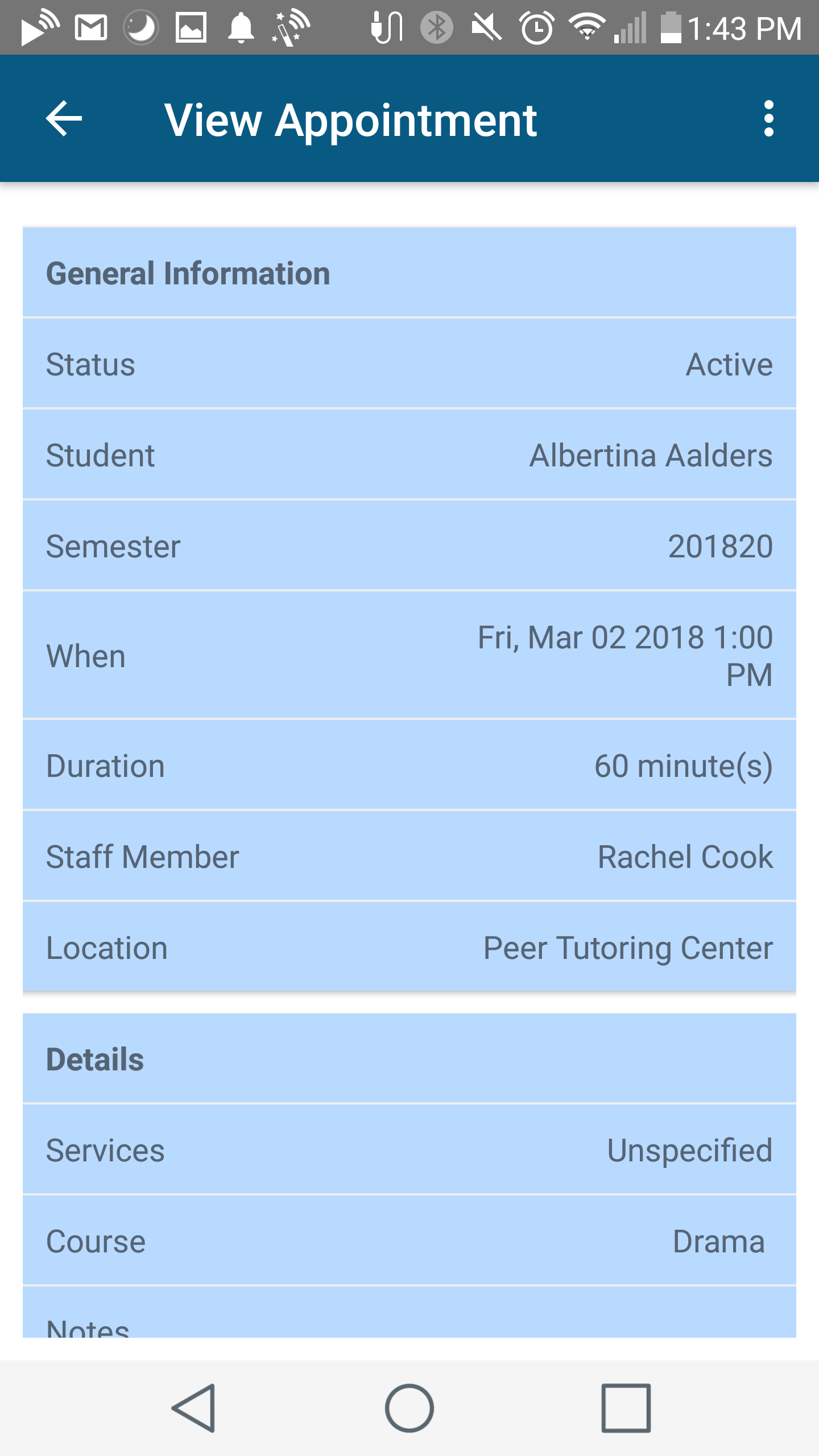 4. Now you can view your appointments on the go. Here, appointments can be updated or canceled and if you need more information about the meeting simply select that appointment.