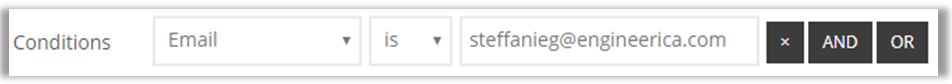 7. Add a Condition to restrict the notification by staff member. This will ensure that the notification only applies to appointments made with a specific staff member on campus. More than one condition can be applied by clicking either the And or the Or buttons once the first condition is created.