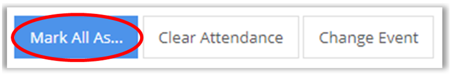 add attendance statuses in bulk by clicking Mark All As. Select an attendance status to assign to all students