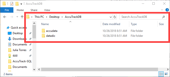 For simplicity, we created a folder called AccuTrackDB on the Desktop in this example. However, we advise that these files be pasted to a shared path that you can connect to from any device in your domain.