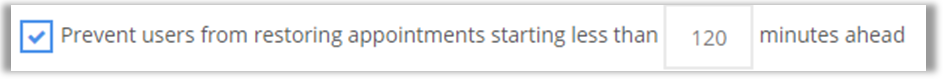 6. Check Prevent users from restoring appointments starting less than _____ minutes ahead.