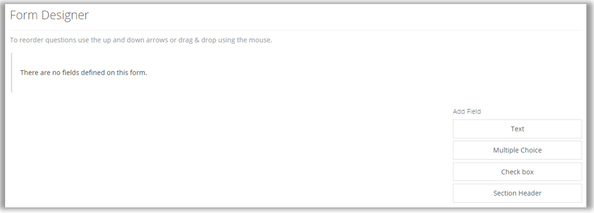 Below the General Information, you will begin to add fields to the profile in the Form Designer.