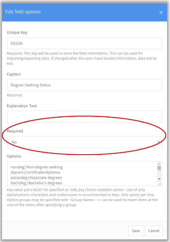 caption. Choose whether this item will be required. We recommend that