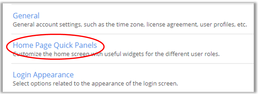 - Home Page Quick Panels