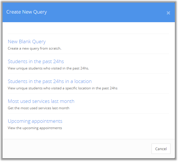 A pop-up box will appear. Select new blank query, or select a common query that you would like to modify.