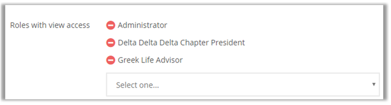 Select Roles with View Access: these are roles who will be able to see your group and its members. Make sure to include your own role.