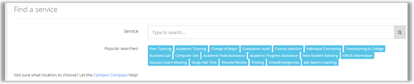 Search for the specific Service needed. Popular searches are listed below the search box and can be clicked.