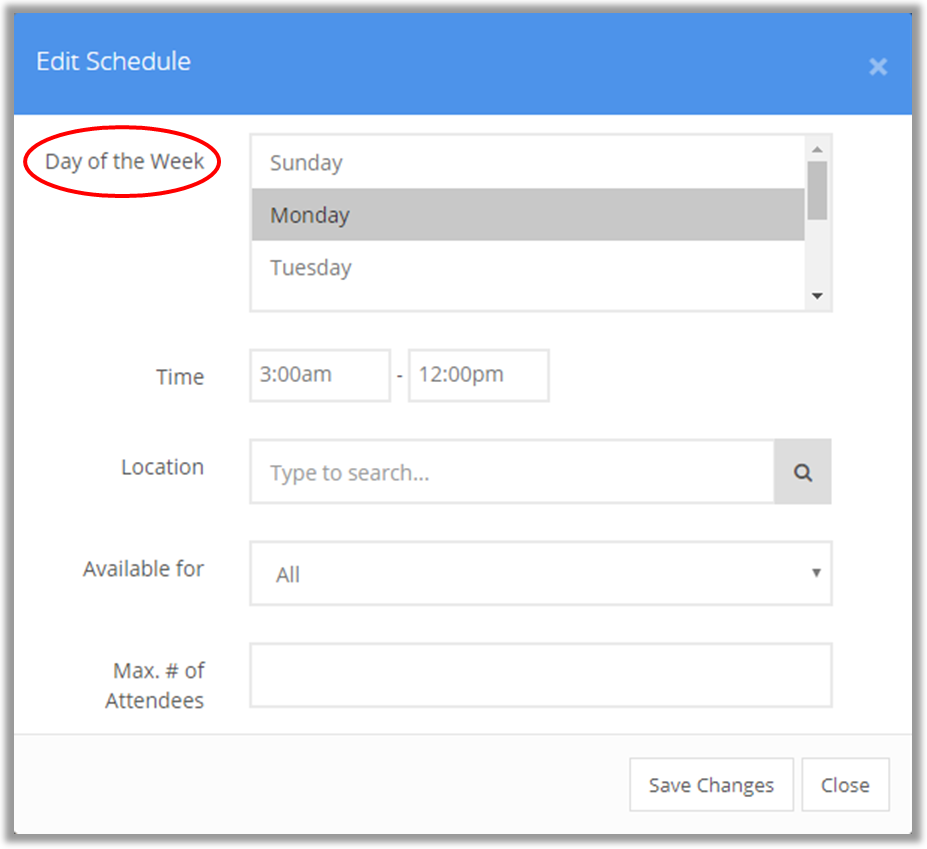 Maximum # Of Appointments Per Week: allows you to set the maximum number of appointments per week that a staff member or attendee can attend. This is typically set at the location level, not the global level.
