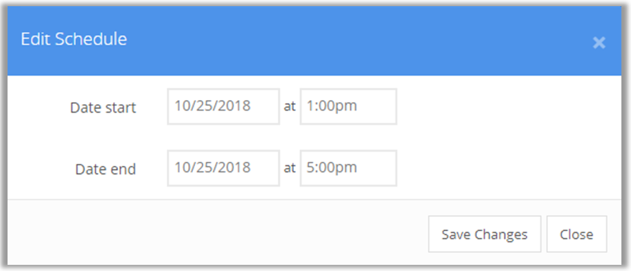 Enter start and end dates/times for the scheduled off time.