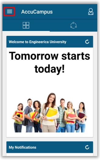 From the app home screen, tap on the tri-bar to expand the side menu.