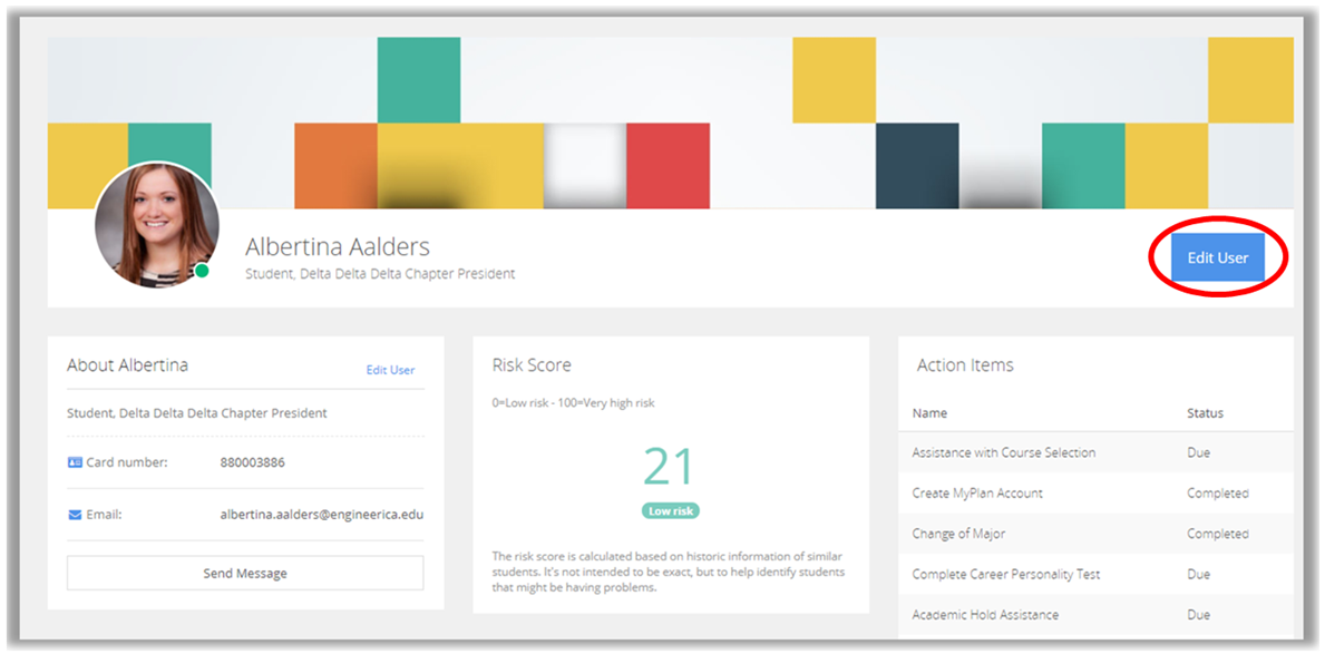You will see the user’s profile page. The information that you are able to see on this page is based on your permissions within the system.