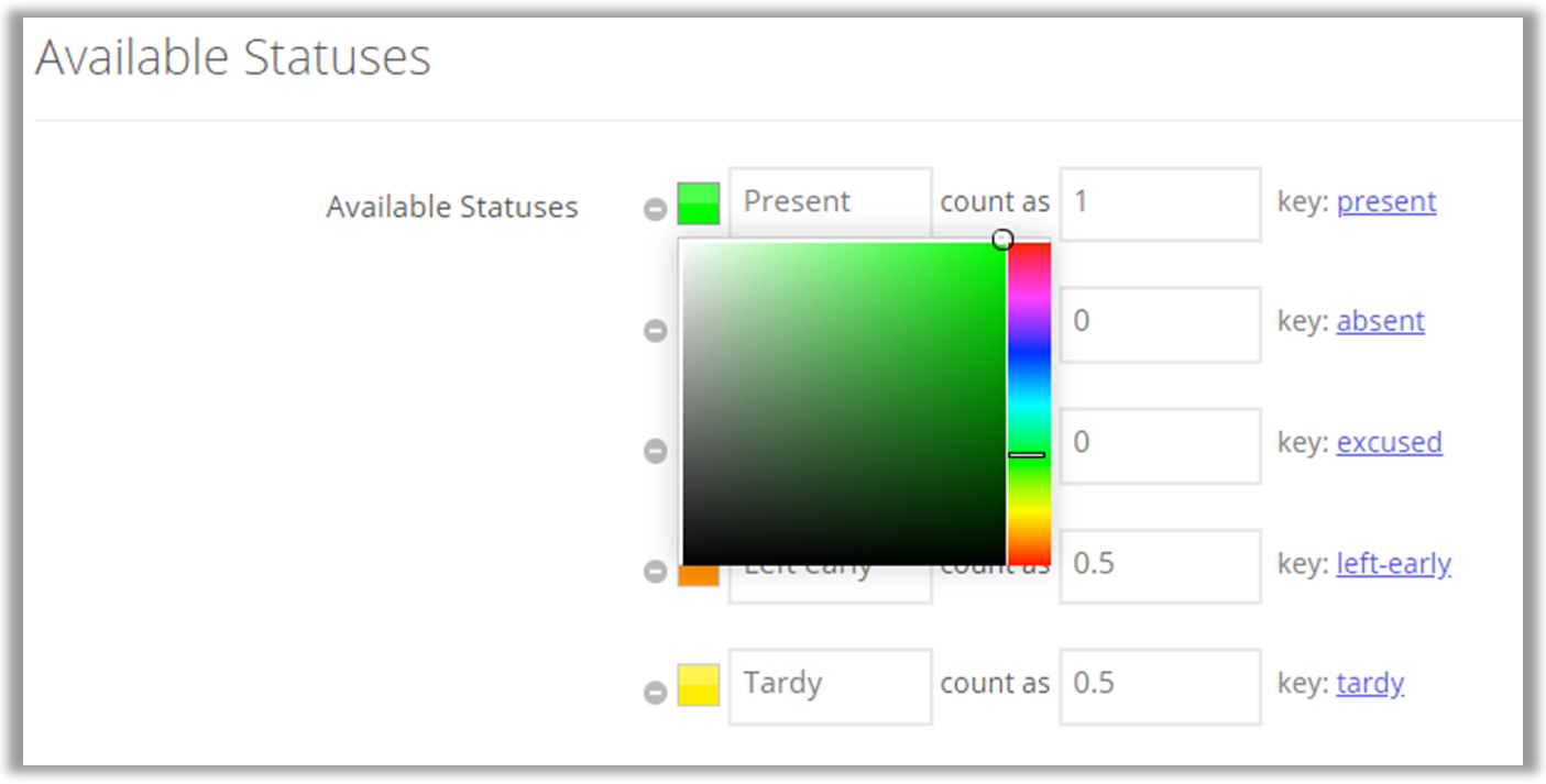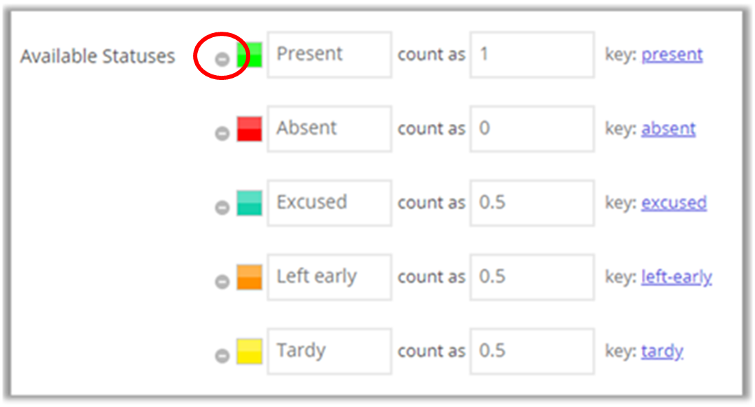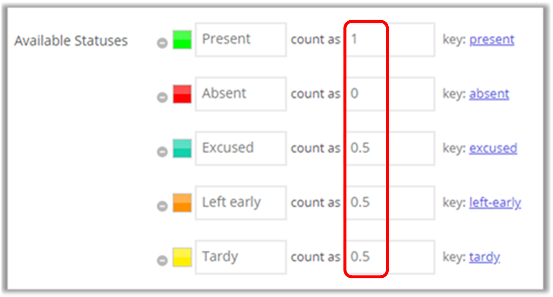 8. Determine the key for a given attendance status. The key is used to uniquely identify the status in each attendee. If you decide to change the text, it will still work.